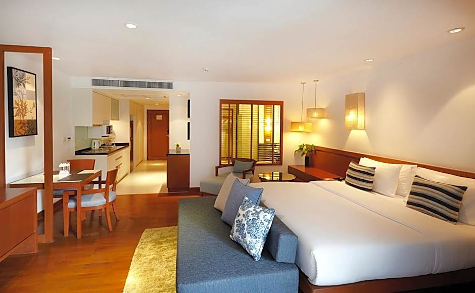Offering more space, studio is located between floors 2-7. It has a large walk-in closet, private balcony and flat-screen TV with home-theater system. It also comes with a kitchen, a bathtub and separate shower facilities. Free WiFi is included.
